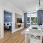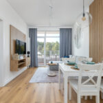 Apartament znajduje się na granicy Ustronia Morskiego i Sianożęt. Lokal znajduje się około 150 metrów od pięknej szerokiej plaży. W bliskiej odległości znajdują się również punkty gastronomiczne i lokalne sklepiki. Do ścisłego centrum Ustronia Morskiego jest około 10 minut drogi pieszo, gdzie mijamy aż 3 MOLA, stanowiące lokalną atrakcję.